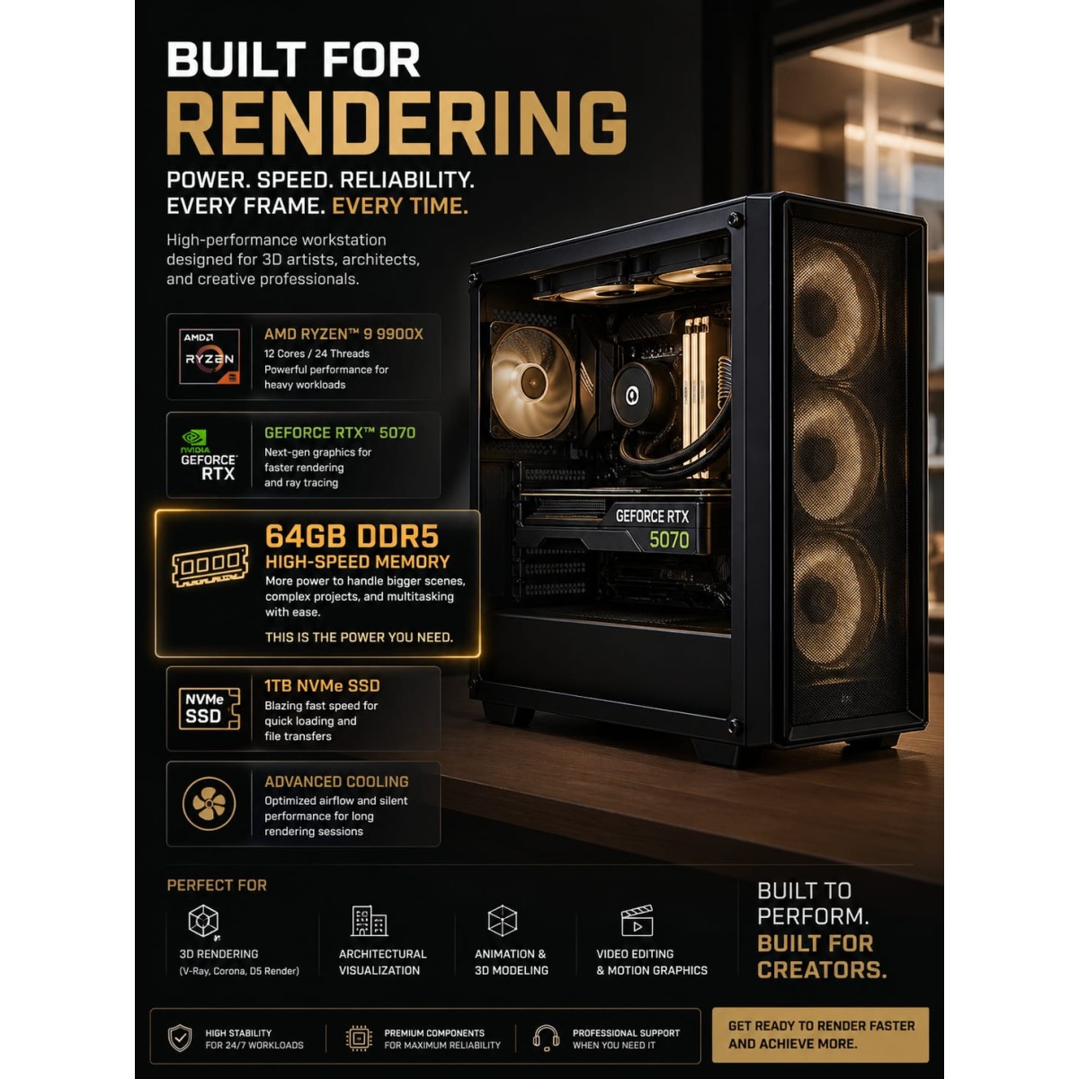 Taipei Render Workstation PC 2026 AMD RYZEN 9 9900X -RTX5070 12GB D7-(((64GB DDR-5)))